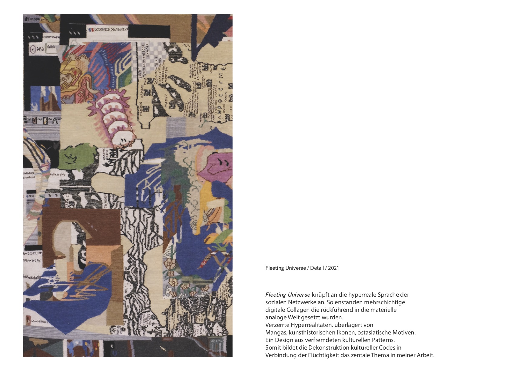 In an increasingly globalized and digitized world, questions of identity, heritage, and collective memory grow urgent. Fleeting Universe engages with the hyperreal language of social networks through multi-layered collages, merging mangas, art historical icons, and East Asian motifs to deconstruct cultural codes and reveal hidden threads linking history, migration, and exchange.